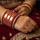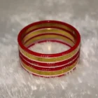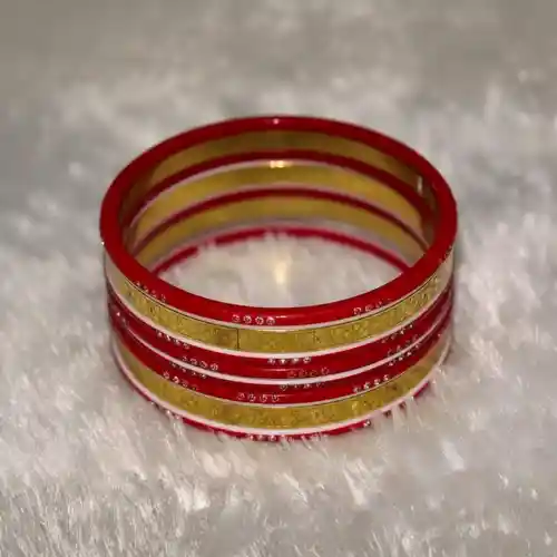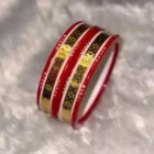 A stunning set of six traditional bangles featuring a mix of ornate patterns and stone settings. Each bangle in the set complements the others, creating a harmonious stack that jingles with every gesture.